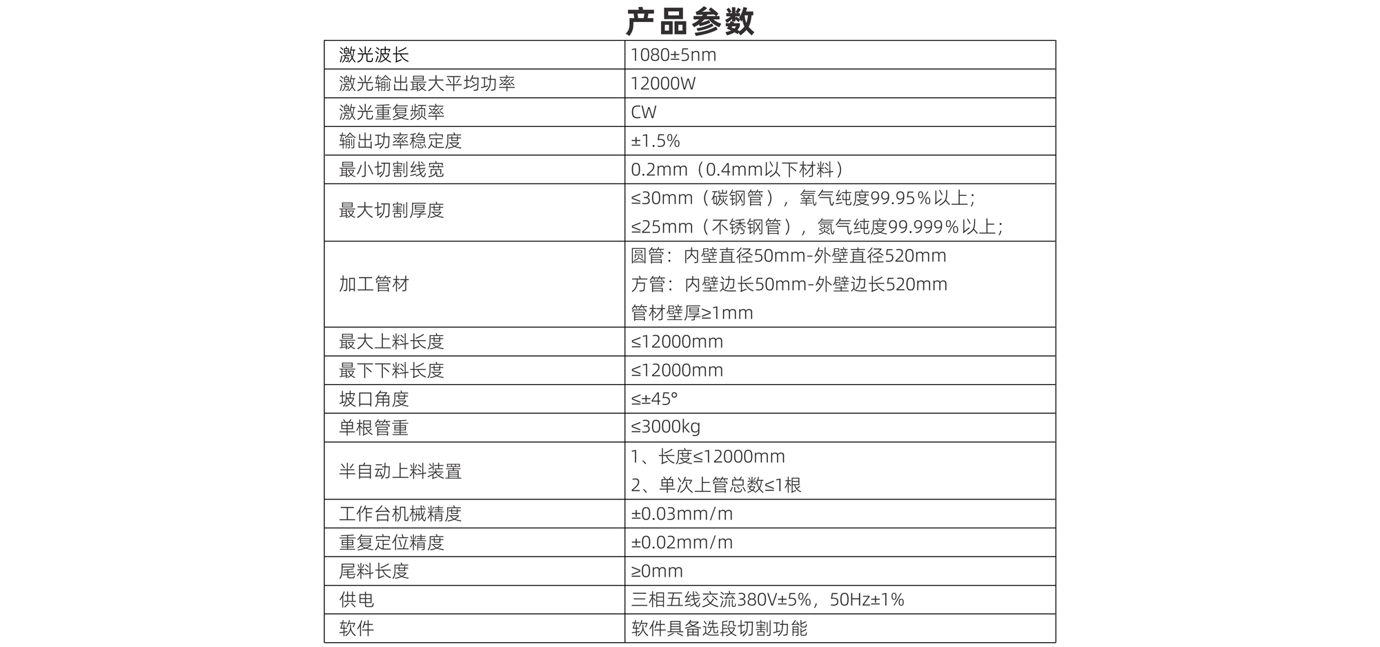 激光輸出最大平均功率 12000W