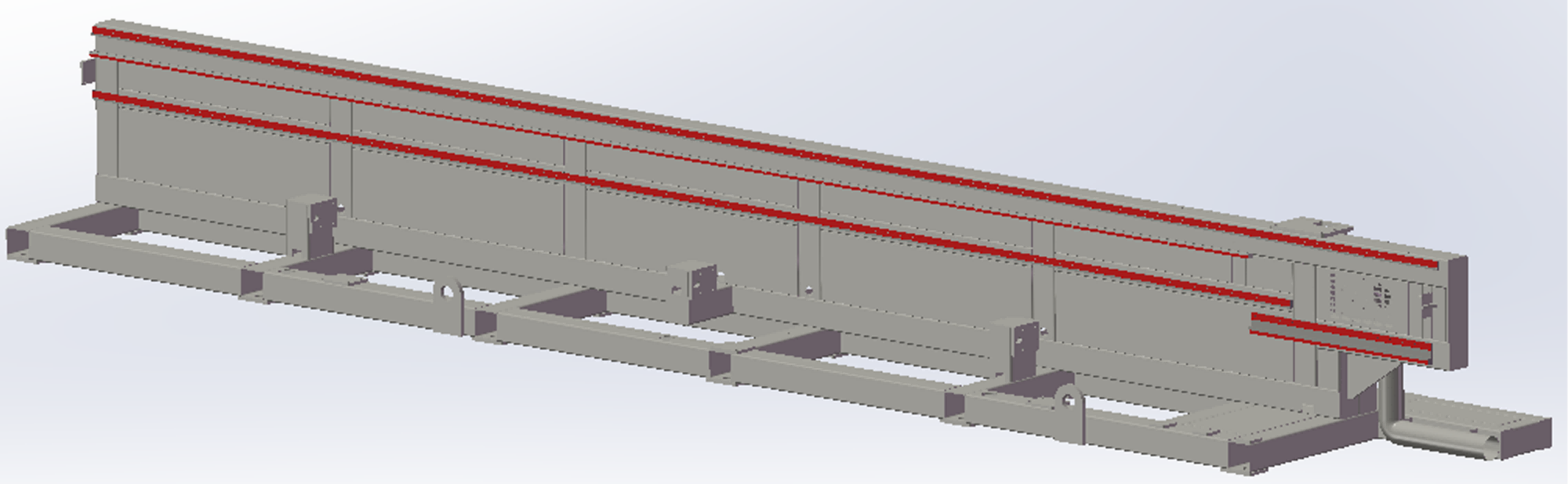 采用一體式焊接床身,焊接完成后進(jìn)行退火處理,龍門加工中心一次加工完成,精度高、剛性強(qiáng)。